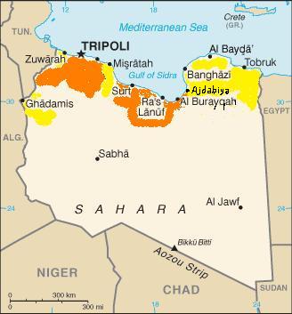 What stands in Qaddafi’s way is the city of Ajdabiya (pop. 200,000), which is garrisoned by rebel forces led by former Interior Minister Abdel Fattah Yunus. Gen. Yunus says he is confident he can defend Ajdabiya, and that from there east the urban populations are themselves heavily armed, which will make it difficult for Qaddafi’s forces to make quick, unopposed advances. It is true that the rebels only had Brega and Ra’s Lanuf for a few days, and that those towns are sparsely populated.